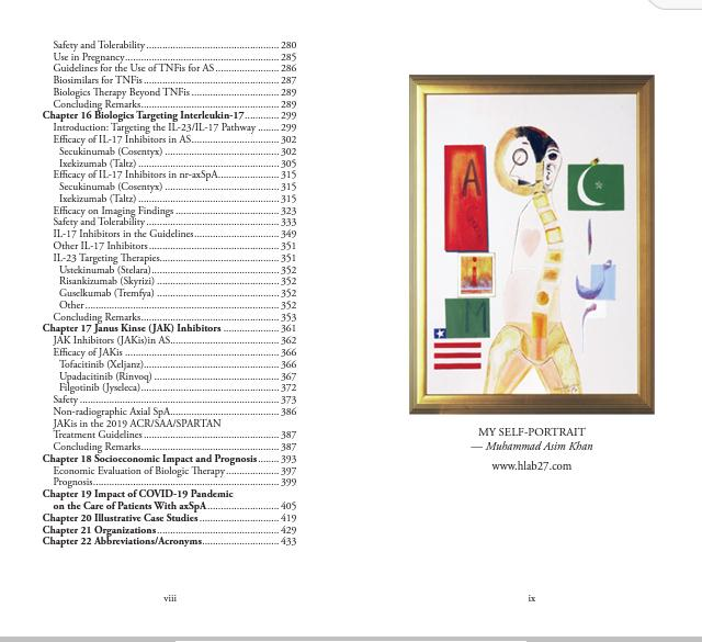 Ankylosing spondylitis (or “AS” for short) is a chronic (progressive) painful inflammatory rheumatic disease which affects the spinal joints, in particular those at the base of the spine (the sacroiliac (SI) joints  and the lumbar spine), with resultant chronic back pain and stiffness. These symptoms typically start at young age, beginning between the ages of 15 and 30; the mean age of onset is 24 years (range 8-45). It is very uncommon for the symptoms to begin after age 45. The most common first symptom is chronic low back pain and stiffness of gradual (insidious) onset. It can take many years, on average about 7 years, before the correct diagnosis.The disease, over many years, leads to gradually progressive stiffness and limitations of spinal mobility and also restricted chest expansion. It can affect other joints besides the spine, in particular the hip and shoulder joints, in some patients, especially when the disease starts in childhood. Involvement of these and other joints of the extremities is relatively more common in developing countries.Approximately one third of the patients can get one or more episodes of acute inflammation of the eye (acute iritis, also called acute anterior uveitis).AS has characteristic x-ray findings, especially changes that result from inflammation of the sacroiliac joints of the pelvis (sacroiliitis). Unfortunately, x-ray evidence of sacroiliitis may take some time to appear. Therefore, an x-ray taken in the early years of the disease course may be normal or indefinite (equivocal). However, over time the SI joints will usually show evidence of sacroiliitis.Its cause is not yet fully known, but there is a strong genetic predisposition; the disease sometimes occurs in more than one member in a family. A gene called HLA-B27 is present in most patients with AS; e.g., >90% of Scandinavian, Chinese and Korean patients, about 80% of European and South Asian patients and 70% of Arab patients as a whole, and less often in some other population (e.g.,  only above 50% of African-American patients). This gene is prevalent in the general population with variable prevalence; e.g., in the general population in the USA this gene is present in 7% of the “whites” and 2 to 3% of African-Americans.The genetic disease predisposition to AS is polygenic; i.e., there are many genes involved, not just HLA-B27. The search is now on for these additional genes and also for the trigger factor(s) (as yet undetermined) that start(s) the disease process. There may be an associated presence of psoriasis, chronic inflammatory bowel disease (ulcerative colotis and Crohn’s disease) and Reiter’s syndrome/reactive arthritis in some patients.There is no cure as yet, but the patient’s back pain and stiffness usually show good symptomatic response to non-steroidal anti-inflammatory drugs (such as diclofenac, naproxen, ibuprofen, etc.) and a regular life-long appropriate physical exercise program. TNF-α inhibitors (such as etanercept (Enbrel®), infliximab (Remicade®), adalimumab (Humira®) and golimumab (Simponi®) have remarkably transformed the management for those patients who do not respond to (or tolerate) conventional therapies.  While the course of AS is quite variable, most patients do well and continue to live normal and productive lives. However, some need to modify their lifestyle and work environment, or change their job (e.g., heavy manual worker doing frequent or prolonged bending and lifting may have to consider an alternative job).